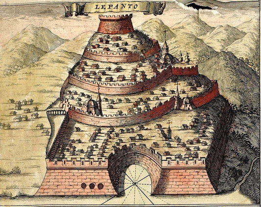 Lepanto Greece White Modern Wood Framed Art Print with Double Matting by Hogenberg, Braun