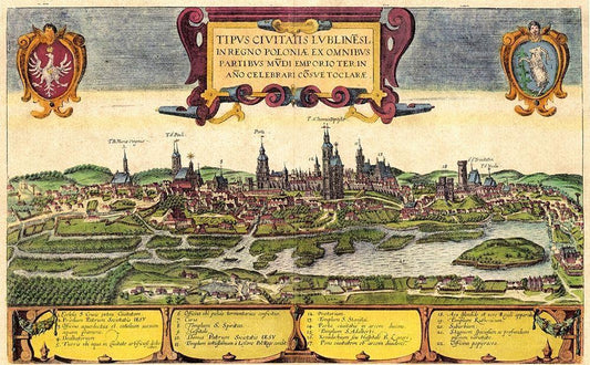 Lublin Poland White Modern Wood Framed Art Print with Double Matting by Hogenberg, Braun