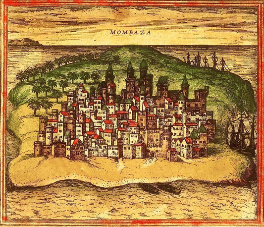 Mombasa Kenya Africa White Modern Wood Framed Art Print with Double Matting by Hogenberg, Braun