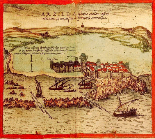 Asilah Morocco White Modern Wood Framed Art Print with Double Matting by Hogenberg, Braun