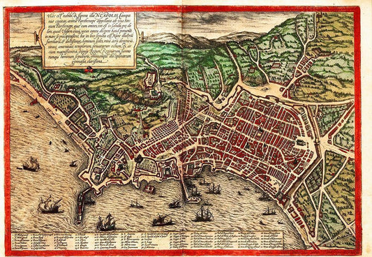 Naples Napoli Italy White Modern Wood Framed Art Print with Double Matting by Hogenberg, Braun