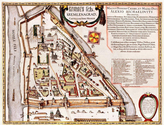 Moscow Moskva Russia White Modern Wood Framed Art Print with Double Matting by Hogenberg, Braun
