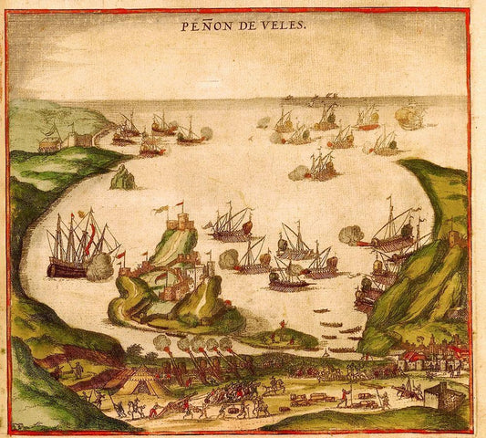 Penon de Velez de la Gomera White Modern Wood Framed Art Print with Double Matting by Hogenberg, Braun