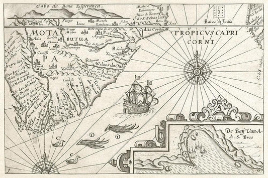 Map of the Cape of Good Hope White Modern Wood Framed Art Print with Double Matting by Vintage Maps