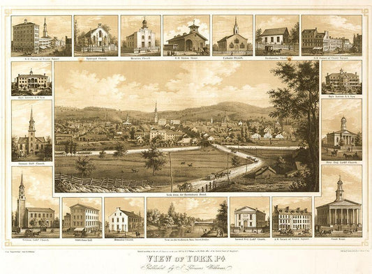 View of York Pennsylvania White Modern Wood Framed Art Print with Double Matting by Vintage Places