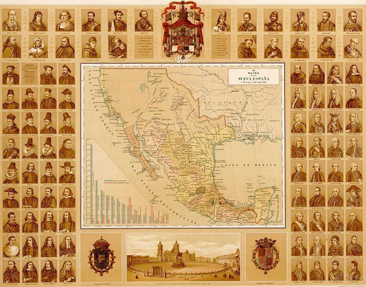 Map of Leaders in New Spain through History White Modern Wood Framed Art Print with Double Matting by Vintage Maps