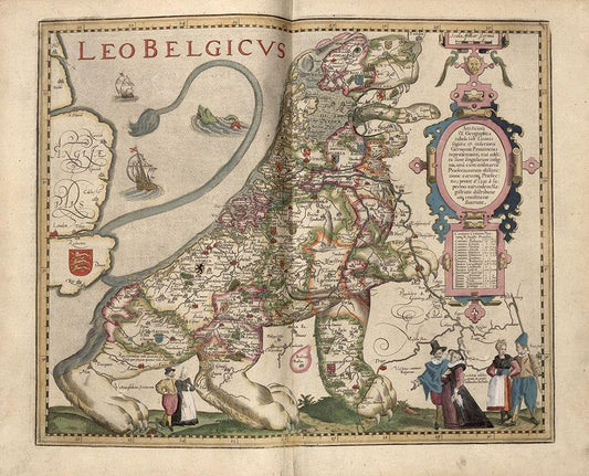 Netherlandic Lion White Modern Wood Framed Art Print with Double Matting by Vintage Maps