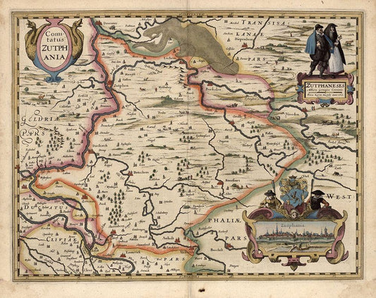 Map of the area around Zutphanis Netherlands White Modern Wood Framed Art Print with Double Matting by Vintage Maps