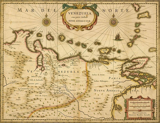 Venezuela 1630 White Modern Wood Framed Art Print with Double Matting by Vintage Maps