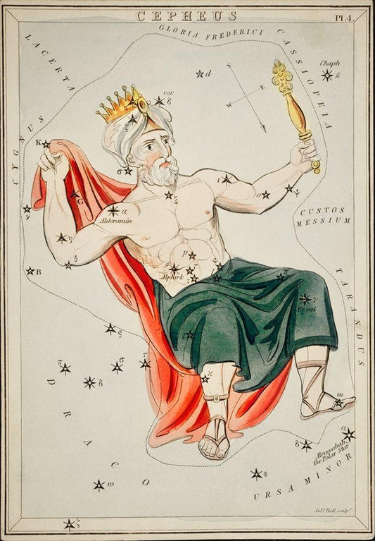 Astronomical chart illustration of the Cepheus White Modern Wood Framed Art Print with Double Matting by Hall, Sidney
