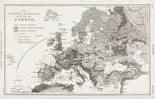 Geology-The Principal Features of Europe Geological 1820 White Modern Wood Framed Art Print with Double Matting by Goldsmith, Oliver