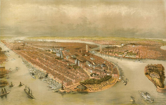 Manhattan Island-New York White Modern Wood Framed Art Print with Double Matting by Vintage Places