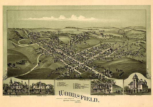 Woodsfield-Ohio 1899 White Modern Wood Framed Art Print with Double Matting by Vintage Places