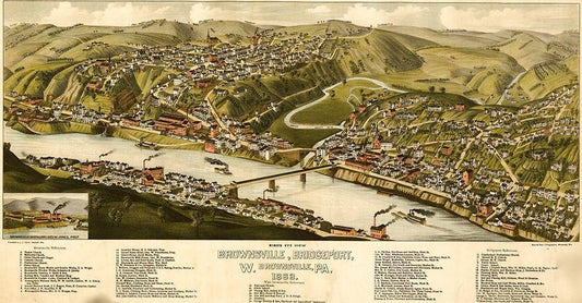 Bridgeport-Pennsylvania 1883 AKA Brownsville White Modern Wood Framed Art Print with Double Matting by Vintage Places