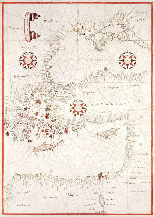Portolan atlas of the Mediterranean Sea-Eastern Mediterranean 1590 White Modern Wood Framed Art Print with Double Matting by Oliva, Joan