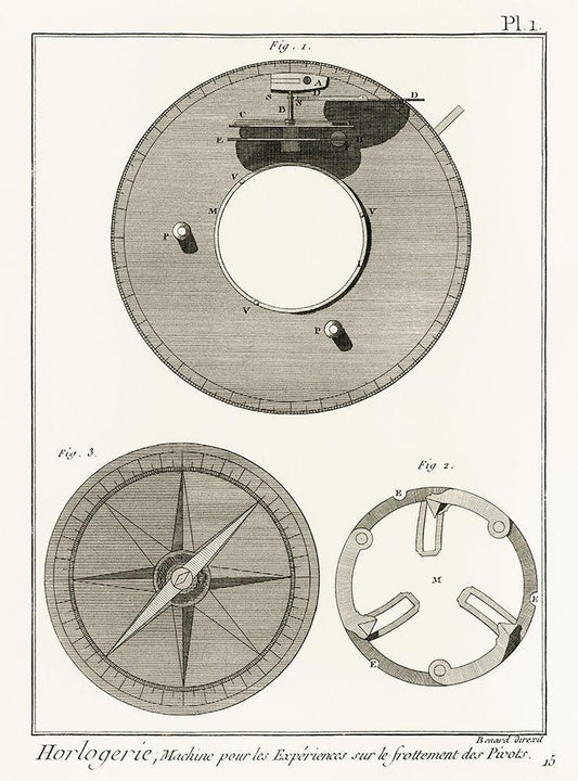 Antique drawing of a compass like watchmaking tool White Modern Wood Framed Art Print with Double Matting by Panckoucke Methodical Encyclopedia