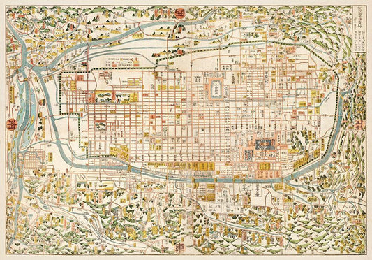 Map of Kyoto 1863 White Modern Wood Framed Art Print with Double Matting by Kahei, Takebara