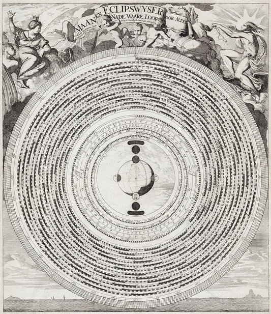 Moon and Eclipse Pointer 1695 White Modern Wood Framed Art Print with Double Matting by Luyken, Caspar