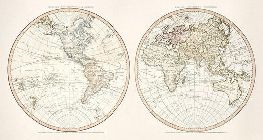 Johnsons Western and Eastern Hemisphere 1866 White Modern Wood Framed Art Print with Double Matting by Johnson and Ward