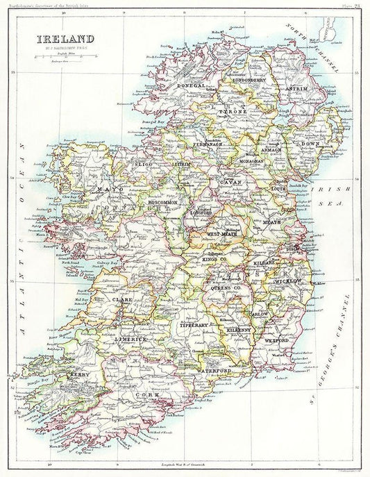 Ireland from the Gazetteer of the British Isles 1887 White Modern Wood Framed Art Print with Double Matting by Bartholomew, John