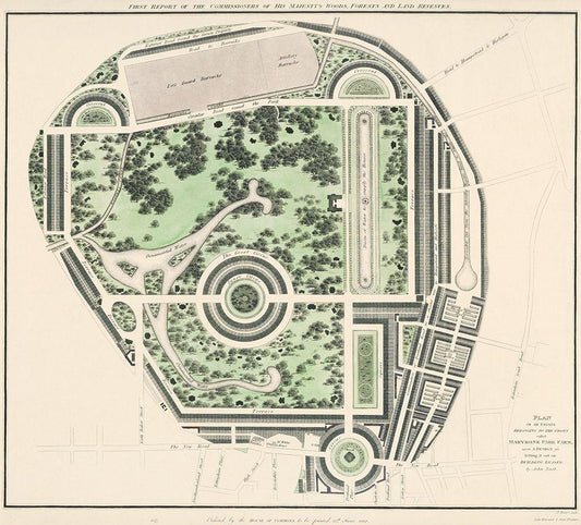Marybone Park Farm Plan White Modern Wood Framed Art Print with Double Matting by Basire, James