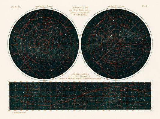 Constellations of the Two Hemispheres 1877 White Modern Wood Framed Art Print with Double Matting by Amedee, Guillemin