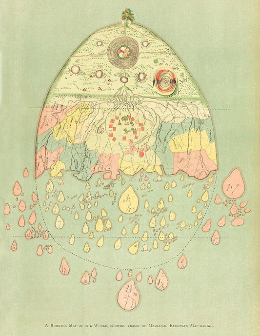 A Burmese map of the world 1906 White Modern Wood Framed Art Print with Double Matting by Griggs, William