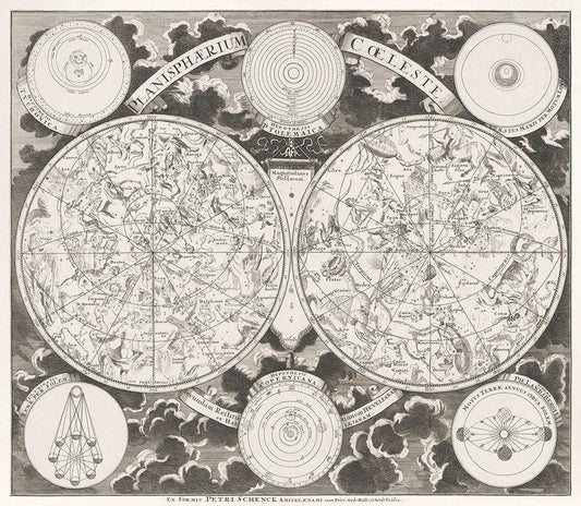Planisphaerivm Aratevm sive Compages Orbivm Mvndanorvm ex hypothesi Aratea in plano expressa 1708 White Modern Wood Framed Art Print with Double Matting by Cellarius, Andreas