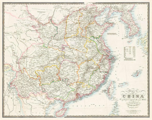 Map of China-1848 White Modern Wood Framed Art Print with Double Matting by Wyld, James