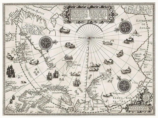Map of the Arctic 1598 White Modern Wood Framed Art Print with Double Matting by Barendsz, William