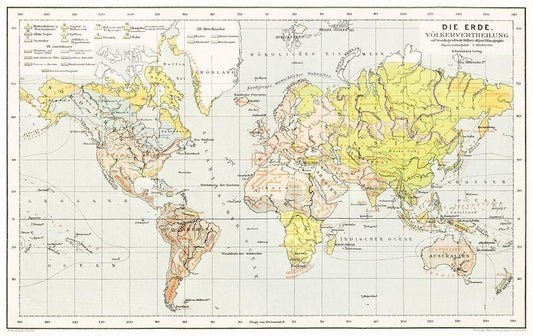 The Earth a general geography and area 1896 White Modern Wood Framed Art Print with Double Matting by Heiderich, Franz