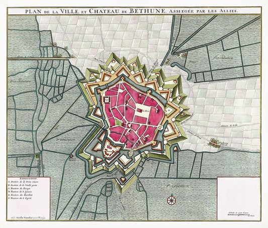 Map of Bethune-France White Modern Wood Framed Art Print with Double Matting by Vintage Maps