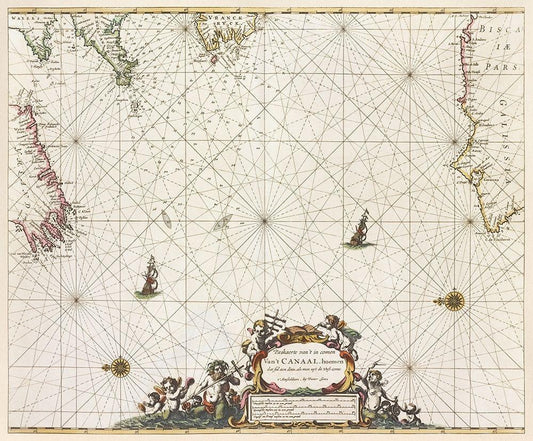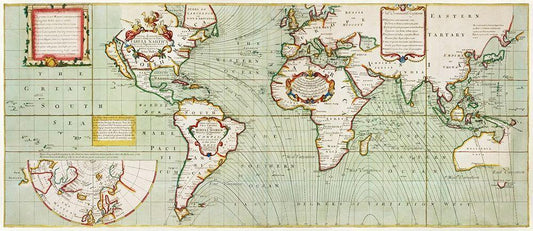 A mapp of the world 1682 White Modern Wood Framed Art Print with Double Matting by Playford, John