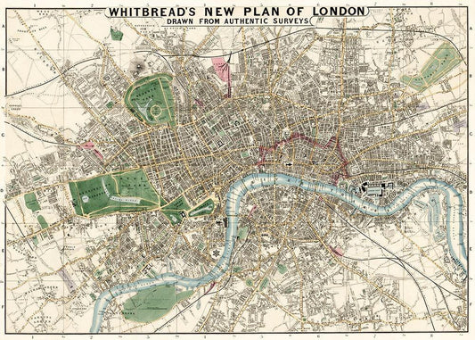 Whitbreads new plan of London drawn from authentic survey 1853 White Modern Wood Framed Art Print with Double Matting by Whitbread, J