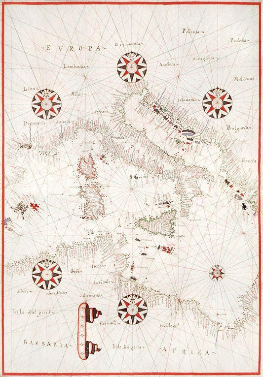 Portolan atlas of the Mediterranean Sea-Central Mediterranean 1590 White Modern Wood Framed Art Print with Double Matting by Olivia, Joan
