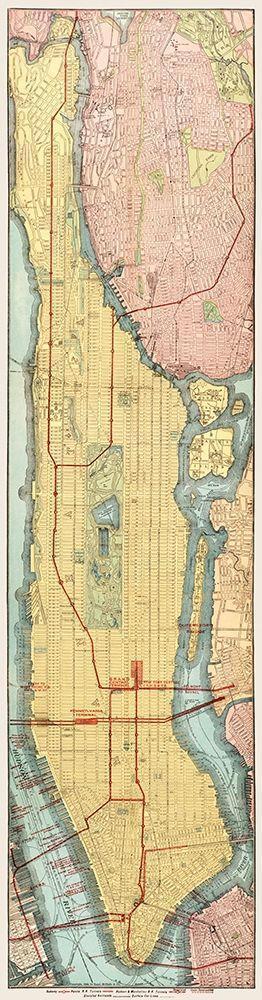 Rapid transit map of Manhattan and adjacent districts of New York City 1908 White Modern Wood Framed Art Print with Double Matting by Rand McNally and Company