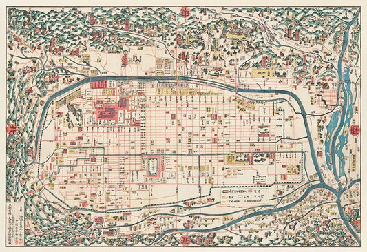 Map of Kyoto 1863 White Modern Wood Framed Art Print with Double Matting by Kahei, Takebara