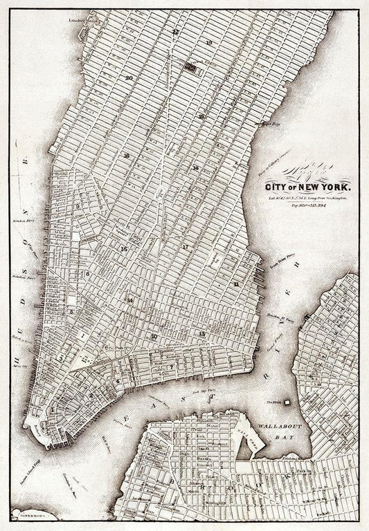 Map of the city of New York-1850 White Modern Wood Framed Art Print with Double Matting by Library of Congress Geography and Map Division Washington