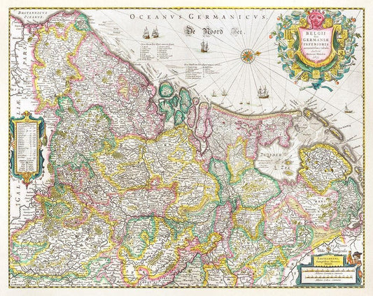 Map of the Netherlands 1631 White Modern Wood Framed Art Print with Double Matting by Hondius, Henricus