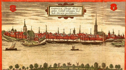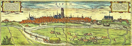 Ribe Denmark White Modern Wood Framed Art Print with Double Matting by Hogenberg, Braun