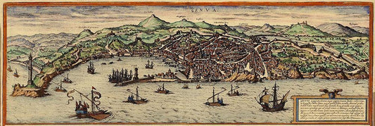 Genoa White Modern Wood Framed Art Print with Double Matting by Hogenberg, Braun