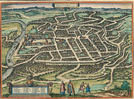 Vilnius Vilna Lithuania White Modern Wood Framed Art Print with Double Matting by Hogenberg, Braun