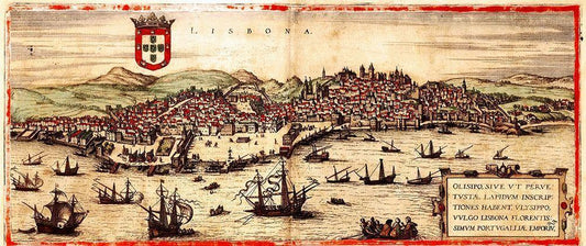 Lisbon Portugal White Modern Wood Framed Art Print with Double Matting by Hogenberg, Braun