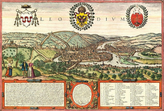 Liege Belgium White Modern Wood Framed Art Print with Double Matting by Hogenberg, Braun