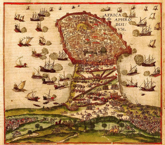 Mahdia Tunisia White Modern Wood Framed Art Print with Double Matting by Hogenberg, Braun