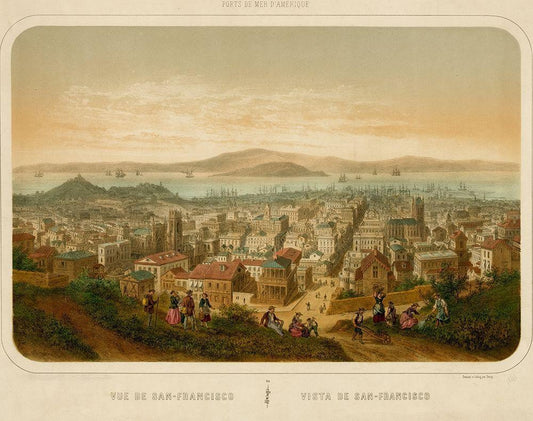 Vue de San Francisco Seaports of America 1860 White Modern Wood Framed Art Print with Double Matting by Vintage Maps
