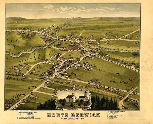North Berwick-Maine 1877 White Modern Wood Framed Art Print with Double Matting by Vintage Maps
