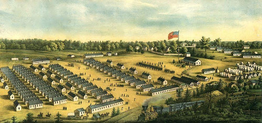 Encampment of US Federal Troops at Newport News 1861 White Modern Wood Framed Art Print with Double Matting by Vintage Maps