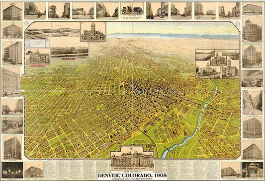 Denver-Colorado 1907 White Modern Wood Framed Art Print with Double Matting by Vintage Maps