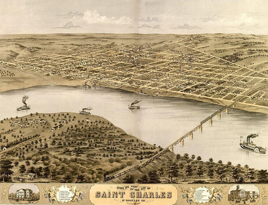 St. Charles-Missouri 1869 White Modern Wood Framed Art Print with Double Matting by Vintage Maps